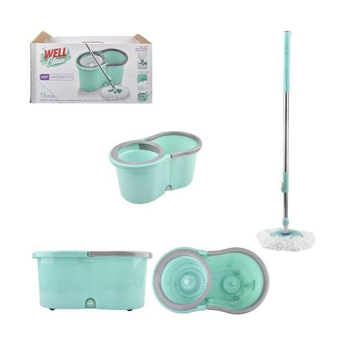 Mop Esfregão Giratório 360° Balde 13L Cabo Extensível Verde