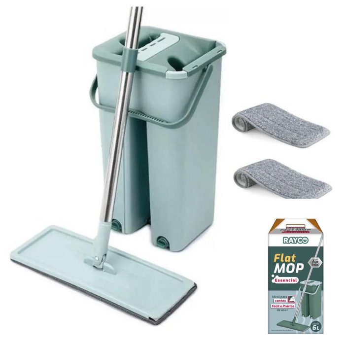 O Mop Flat da Rayco disponibiliza um kit completo com balde, rodo e microfibra.
