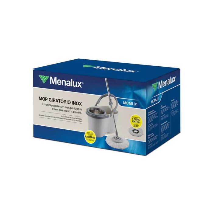 Mop Giratório 6,5L Inóx Menalux Original Electrolux MCML01 Seja bem-vindo(a) a Refrigeração Catavento Estamos há mais de 28 anos no mercado, sendo a sua melhor solução em todos os tipos de peças, ferramentas e materiais para manutenção e instalação de ar-condicionado comerciais, residenciais, automotivos, geladeiras, freezers, bebedouros ou purificadores. EFETUE A COMPRA PARA QUE POSSAMOS AGILIZAR SUA ENTREGA! Descrição: Este produto foi projetado para facilitar a limpeza, incluindo tarefas pesadas, limpeza a seco e remoção de poeira, sem que você precise tocar na sujeira. Seu balde possui uma capacidade total de 6,5 litros, cesto de aço inoxidável e inclui um refil extra durável feito com cordões de algodão. Imagens meramente ilustrativas. Informações Adicionais: O mop giratório é um utensílio de limpeza eficiente e versátil, com uma cabeça que se move em várias direções, facilitando a limpeza de diferentes áreas. Sua haste ajustável permite alcançar locais altos e de difícil acesso. Além disso, muitos modelos possuem sistemas de torção para facilitar a remoção da sujeira, tornando a limpeza mais eficaz e menos trabalhosa. O mop giratório é uma ferramenta prática para facilitar a limpeza doméstica. Aplicável em: Todos os cômodos de uma casa e em qualquer tipos de pisos, entre eles: cerâmica, porcelanato, mármore, granito, granilite e pastilha. Itens que Acompanham: 01 MOP GIRATÓRIO 6,5L INOX MENALUX MCML01 ELECTROLUX