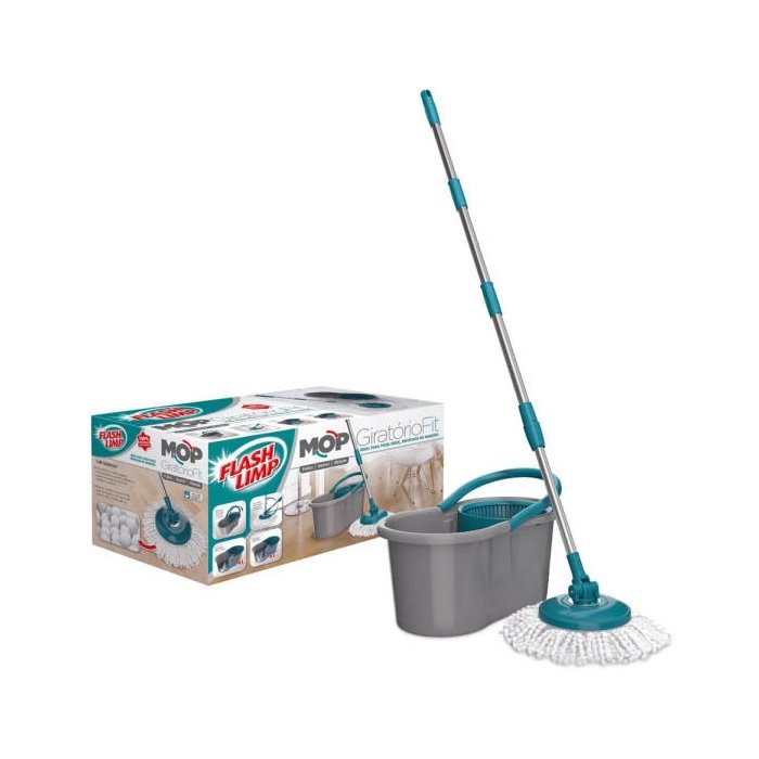 Mop Giratório Fit FlashLimp com Balde Cinza e Verde
