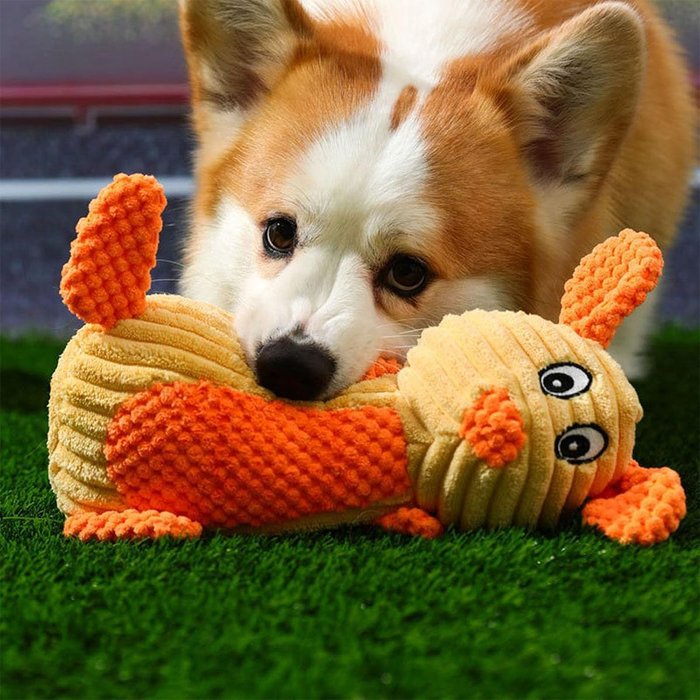 Mordedor Pelucia Pet Cachorro Gato Petshop Brinquedo com Apito Dentiçao Animais Divertido Interativo Amarelo e Laranja