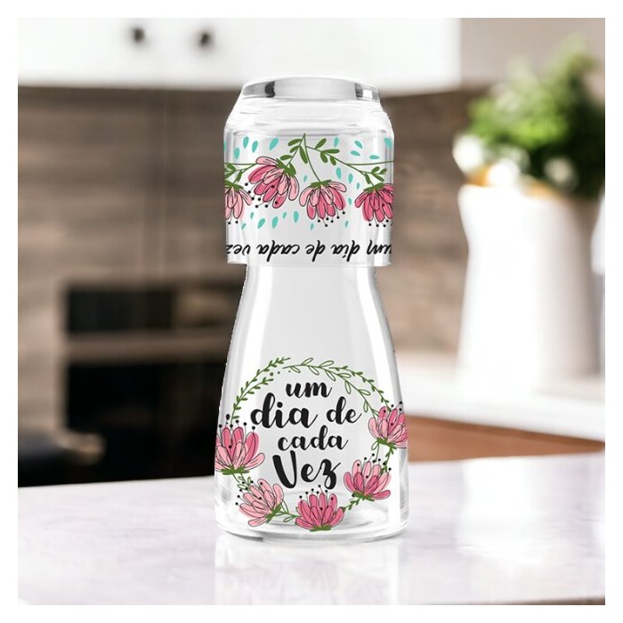 A Moringa de Vidro com Copo, decorada com Olhos Gregos, é uma peça elegante que combina funcionalidade e estética de maneira única. Esta moringa é projetada com um corpo de vidro transparente, permitindo que você aprecie facilmente o conteúdo interno. O conjunto inclui um copo que se encaixa perfeitamente na moringa, proporcionando praticidade ao servir água ou qualquer outra bebida. O vidro transparente permite que você veja o nível do líquido, facilitando a tarefa de manter a moringa e o copo sempre abastecidos.Especificações do produto: Peso: 420g