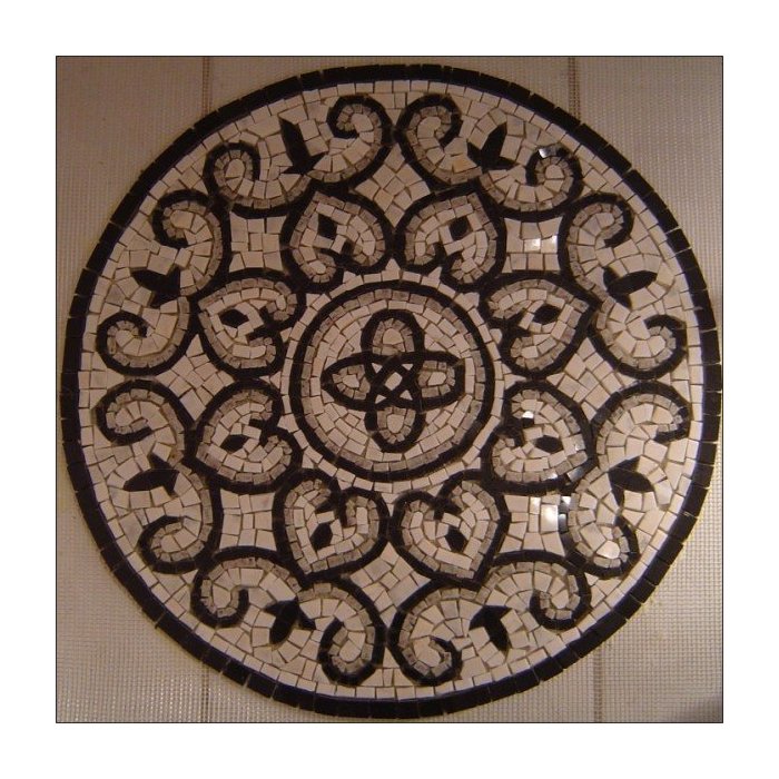 Piso em mosaico inspirado diretamente em achado arqueológica da época romana, sofisticação das cores e design característico da épocaSignificado da mandala:Esta é uma mandala composta de alguns principais motivos: A voluta espiral, as 4 ou 8 pontas e no centro o nó celta de quatro lados. Baseada num piso de hall de entrada original romano, fizemos esta releitura para uso decorativo para os dias de hoje, mantendo as mesmas cores do tradicional mosaico branco e preto romano. As 8 pontas relembram um motivo celta de proteção em oito pontas qual cada uma recebe um tridente, utilizada para encorajar o portador à vitória e ao mesmo tempo obter invencibilidade, também expandir a percepção. As espirais são ornamentações da natureza que trazem sempre o significa do de desenvolvimento e crescimento constante, assim são os raminhos espirais da videira, as conchas do mar, o chifre do carneiro, as nebulosas espirais. No centro o nó celta de quatro laços, a eternidade, a continuidade, e a interligação de tudo o que existe no mundo material.Veja mais sobre os significados desta mandala clicando em: tradução e interpretação das mandalas ao final deste texto. Aplicações: entrada, piso hall, parede. Veja sobre o manual de colocação do mosaico no link ao final deste texto.Especificações técnicas do mosaico:Feito com pedras - Mármores e granitos de todo o Brasil e importados da Europa e Ásia - para obter todas as cores desejadas em pedras naturais;Vem todo montado sobre tela, só colocar conforme manual de colocação, link no final deste texto.Resistência e Durabilidade em área interna e externa;Espessura de 10 mm – Mesma espessura do porcelanato ou piso cerâmicoLiso e agradável para uso diário;Mosaico feito integralmente à mão com técnica do mosaico romanoFeito com estudos de geometria, proporção Áurea, teoria das coresVeja como é produzido nosso mosaico em: Como é feito o nosso mosaico ao final deste texto.