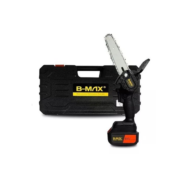 Cor: Preto.Material: ABS + Metal + Componentes Eletrônicos.Sem fio, Recarregável.Carregador BIVOLT (110v/220v).Bateria de 2000 mAh.Autonomia de Uso: 2 a 3 horas.Tempo de recarga: 6 a 8 horas.Tensão nominal: 48v.Potência: 400w.Velocidade do Corte: 5 m/s.Gatilho para ativação (igual uma furadeira) + Trava de segurança.Maior praticidade nos serviços de poda, carpintaria, jardinagem, etc.Produto mais leve, trazendo mais conforto na hora do trabalho.Bateria Recarregável 48v com longa duração.Design ergonômico, Portátil.Fácil transporte e limpeza.Itens Inclusos:1x Mini Motosserra 15 cm1x Bateria 48v1x Carregador BIVOLT 110/220v1x chave1x maleta