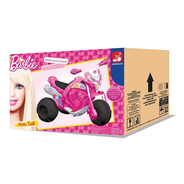 A garotada vai passar horas passeando com esta linda Moto Trail Barbie EL 6V - Brinquedos Bandeirante Desenvolvido com materiais resistentes, ela é perfeita para os pequenos a partir de 3 anos A moto possui módulo eletrônico no painel com som de motor, câmbio com 2 marchas: frente e ré, é movida por bateria recarregável de 6 volts e acompanha carregador automático 127/220V, tem dispositivo de proteção do sistema elétrico e sua velocidade chega até a 4km/h Dê mais liberdade para a criançada passear por aí!