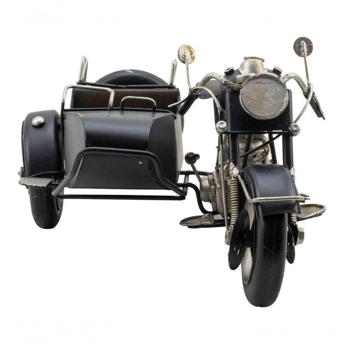 Motocicleta Preta com Sidecar 28cm Estilo Retrô - Vintage
