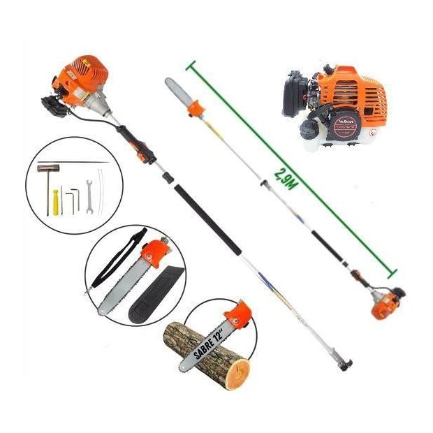 Itens e acessórios na(s) caixa(s): 01 Motor, 01 sabre, 01 dosador de combustível, 04 parafusos, 01 corrente Oregon, protetor de sabre, 01 cinto de sustentação, 01 jogo de chave (1 chave de boca, 1 chave combinada, 1 chave fenda) e manual do usuário. 01 haste com eixo cardã completa, extensor com eixo