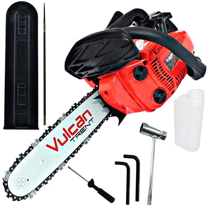 As Motosserras à Gasolina Vulcan Trent, são máquinas modernas, com potência e durabilidade para garantir de maneira eficiente a aplicação em todos os trabalhos de corte. Como a motosserra VSL250 com motor 2 tempos, 25 cilindradas e sabre de 12” com corrente de 3/8 x 1.3. É leve e prática, de uso ocasional é perfeita para a manutenção de áreas verdes, possui gancho de sustentação para podas, também pode ser usada no corte de lenha e construção civil.