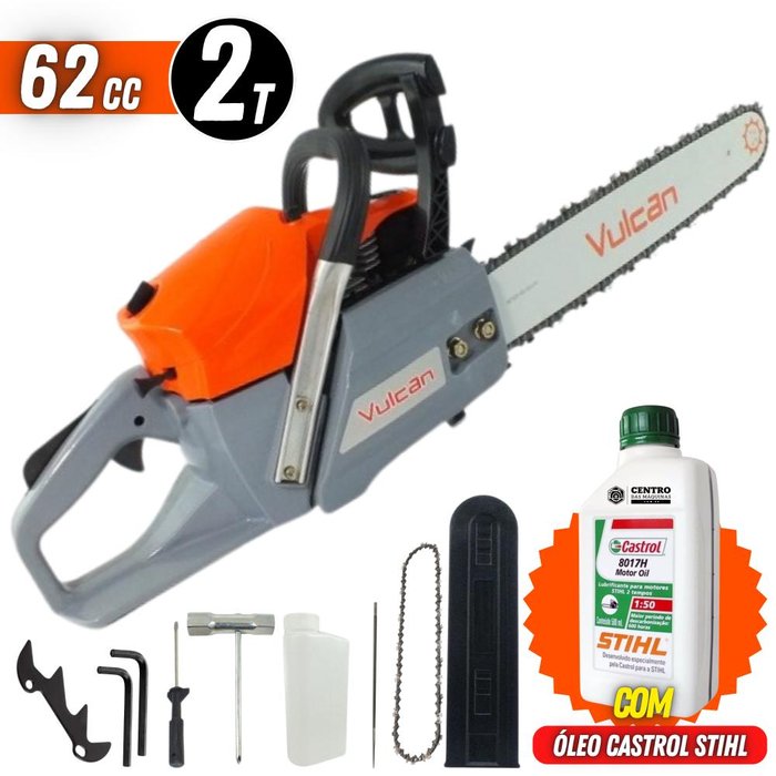 Motosserra Profissional á Gasolina Vulcan VS620 2 Tempos 62cc 4HP + Óleo Castrol Stihl 2T