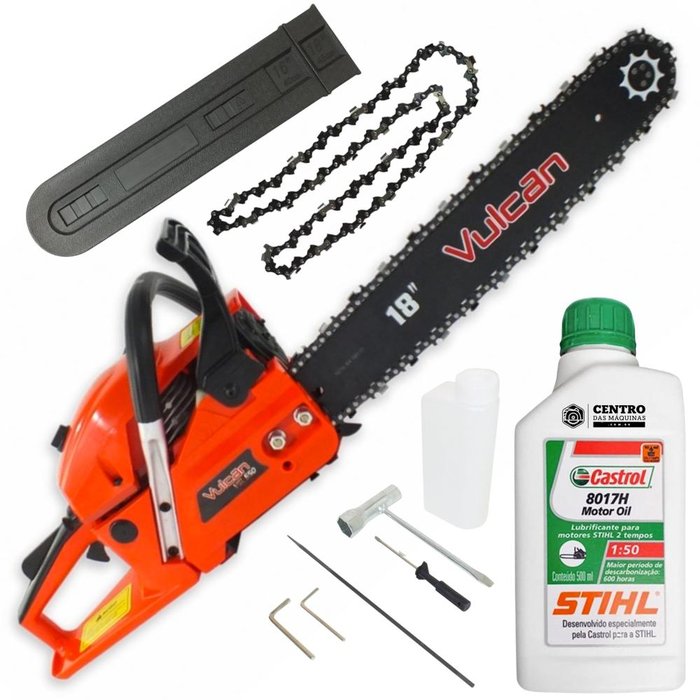 Motosserra Vulcan VSL550 2T 55CC 3,00HP Sabre PTA Rolante 18" COR. 3/8 x 1,5mm Com Óleo Stihl