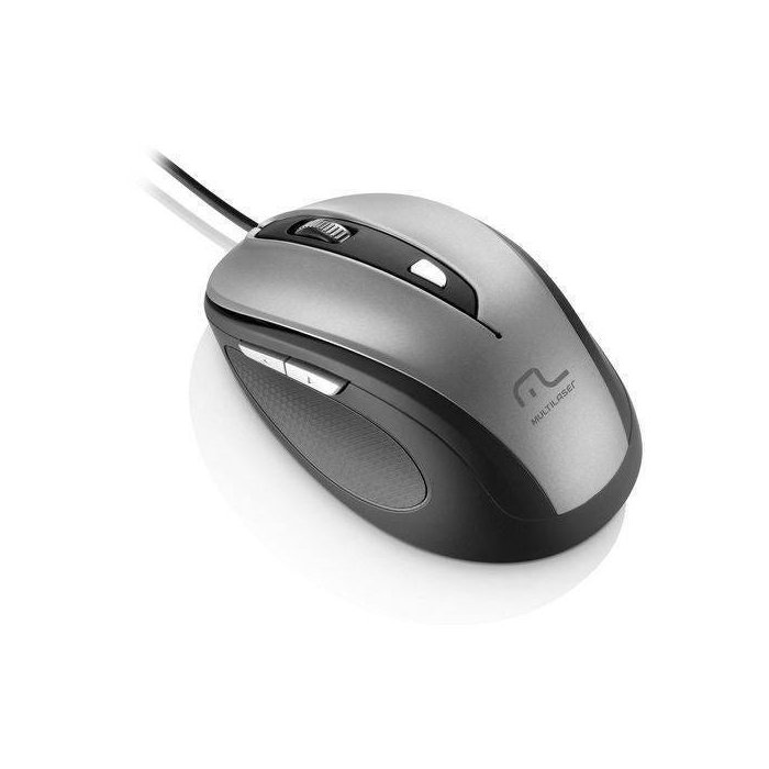 Mouse Multilaser Com Fio 1600Dpi USB 6 Botões Preto e Cinza