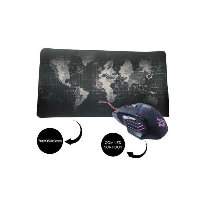 Mouse Pad Gamer Mapa Do Mundo 70x35 + Mouse Gamer 3000Dpi com LED