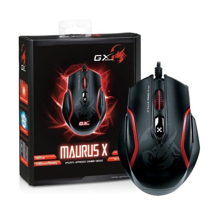 Mouse USB Genius GX Gaming Maurusx Optical 6 Botões FPS 4000DPI USB 31010167101 Preto/Vermelho
