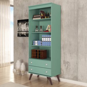 O grande destaque da estante estilo retrô é o fato de a base não encostar no chão. Este modelo conta com pés, que dão um charme e deixa o móvel mais aconchegante e romântico.