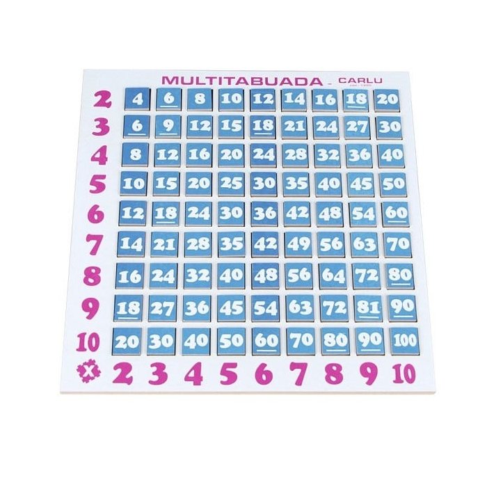 Multi Tabuada confeccionada em M.D.F.. Base de M.D.F. medindo 30 x 30 x 0,9 cm, com 81 quadradinhos de M.D.F. representando os resultados. Embalagem: Película de P.V.C. encolhível.Produto com certificaçao do INMETRO.CE-BRI/ICEPEX - N 00928-96