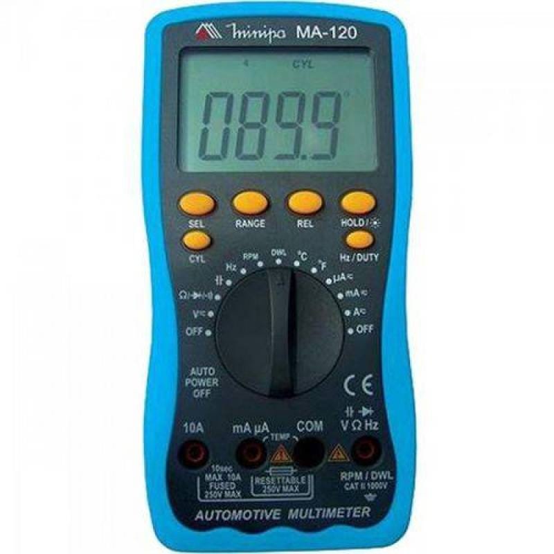 O modelo Ma-120 diferencia-se dos modelos de uso geral por causa das funções específicas da área automotiva, tais como Rpm, Dwell (Ângulo de Permanência) e Duty Cycle (Ciclo de Trabalho).