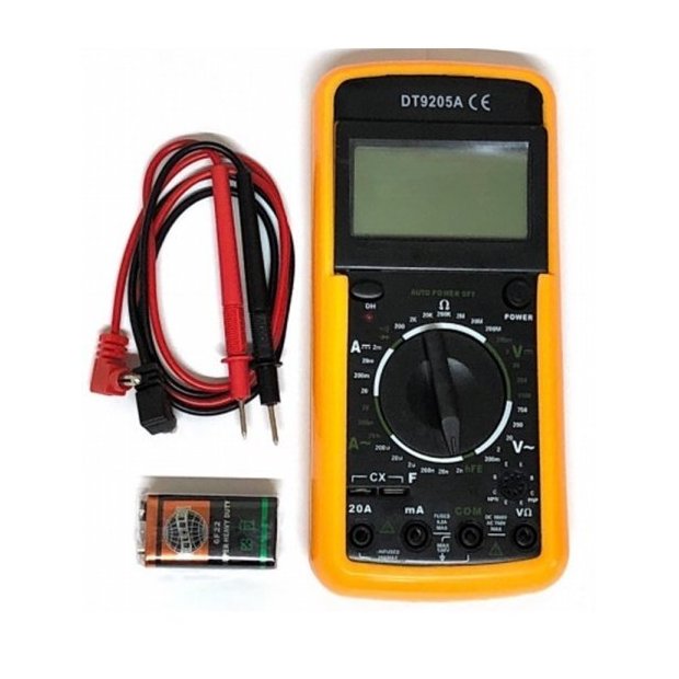 Seletor rotativo com 32 funções. Desligamento automático. Leitura de display 1999. Compacto para medição de voltagem. DC e AC, corrente DC, resistência e díodo. Medição de transistores e teste funcional de continuidade. Visor de LCD com tamanho grande e “Ponta de Prova” inclusas. - Dados de Espera - Desligamento Automático - Display de LCD Grande - Função Auto Zero - Interruptor com 32 posições - Múltiplas funções e alcances Conteúdo da embalagem: 01 Multímetro Digital 02 Ponta de prova 01 Bateria 9v Especificações Técnicas: - Corrente contínua e alternada. - Sistema proteção total contra sobrecarga. - Dispensa qualquer outro aparelho de medição de tensão elétrica. - Precisão é garantida, 23ºC +-, menos do que 80% umidade relativa. Dados Técnicos: DVC: 200mv - 1000v ACV: 200V - 750V DCA: 200ua - 10A OHM: 200 - 2000k HFE: SimTeste de Diodo: Sim Aviso sonoro: Sim Onda quadrada O/P: Sim Funciona com Bateria 9V (inclusa)