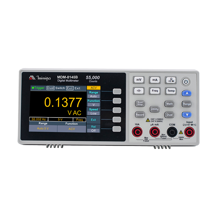 Diferencia-se por ser um multímetro digital de 55.000 contagens e interface USB. Faz medidas de Tensão DC / (AC RMS), Corrente DC / (AC RMS), Resistência, Capacitância, Frequência de Rede, Testes de Diodo, Temperatura e Continuidade. Como características adicionais apresenta as funções de Máx./Min. e Relativo e Data Hold.