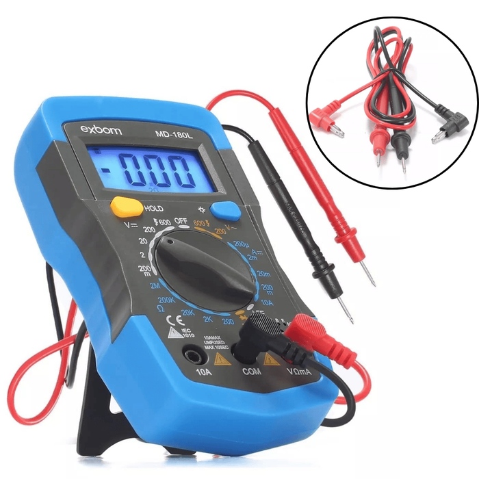 Ideal para eletricistas, técnicos e entusiastas, este multímetro digital portátil oferece medições precisas de tensão, corrente e resistência, garantindo análises seguras e eficientes. Seu design compacto e ergonômico aliado ao visor de fácil leitura com luz de fundo azul facilita o uso em qualquer ambiente, mesmo com pouca iluminação.