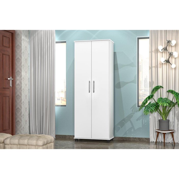 Multiuso / Armário ARE 2 Portas Com Prateleiras Interna e Puxadores Cromados Com Rodízios Cor Branco Branco