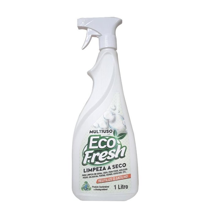 Já imaginou limpar sua casa sem sujar o planeta? O super limpador multiuso ECO FRESH de 1 litro, é biodegradável, sustentável e muito aceito por pessoas alérgicas à produtos de limpeza. É um excelente facilitador na limpeza da casa, pois não precisa utilizar água, utilizado a seco. Com ele você pode limpar eletrodomésticos, portas, janelas, vidros de carro (forma uma película), superfícies pintadas, móveis, pisos, madeiras, plásticos e superfícies em geral. Excelente desengordurante, imagine a grelha de sua churrasqueira ou seu fogão, como ficará limpinho? A embalagem acompanha gatilho, para você reutilizar. Acabou seu produto? Não se preocupe, só repor com o Refil ECO FRESH. Incrível, sua casa muito mais limpa, higienizada com um único produto!