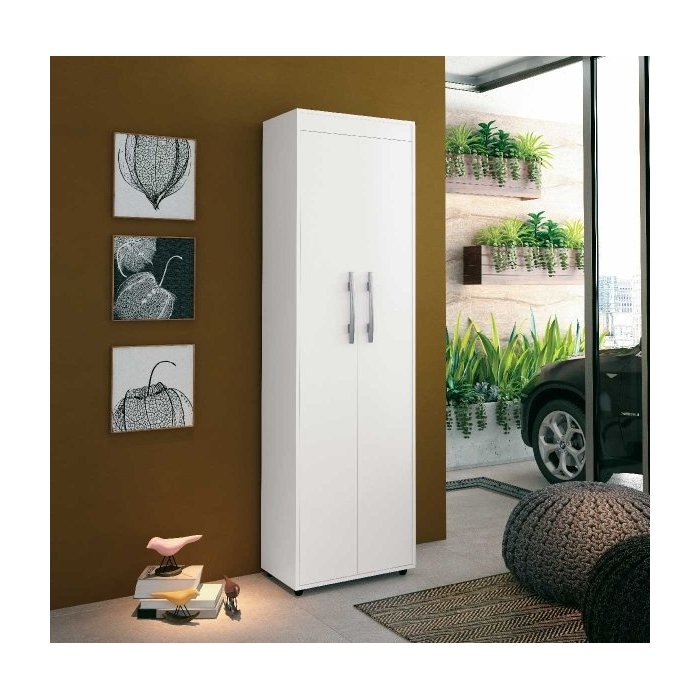 Multiuso Uber 186 - Branco O Multiuso Uber é perfeito para a organização do ambiente. Serve para o escritório, cozinha e até mesmo para sala de estar. Guarde seus livros, filmes, sapatos, caixas, materiais de limpeza e até mesmo os brinquedos das crianças. Ele não atrapalha o ambiente, com várias prateleiras internas, tem um ótimo aproveitamento do espaço. Organize sua vida, compre este belo multiuso. Itens Inclusos 1 Armário Multiuso com 4 pés. kit completo para montagem, manual detalhado de instruções para montagem. Garantia 3 meses contra defeito de fabricação Instruções de Limpeza Limpar com flanela ou pano macio seco, não utilizar produtos abrasivos, desengordurantes, álcool ou solvente. Não expor o produto diretamente à luz solar e à umidade Informações Do Produto Altura: 186Cm Largura: 56 Cm Comprimento: 33 Cm Prateleiras: 5 Portas: 2 * Sugerimos a contratação de um montador profissional para a montagem do produto. Não nos responsabilizamos por avarias causadas no ato da montagem. * Não nos responsabilizamos pela montagem e desmontagem do produto no ato da entrega e devolução, assim como os custos gerados nestas situações. A transportadora entregará o produto no andar térreo do endereço de entrega. Não nos responsabilizamos por subir escadas, corredores e elevadores ou transporte por guincho em apartamentos. *Imagens meramente ilustrativas