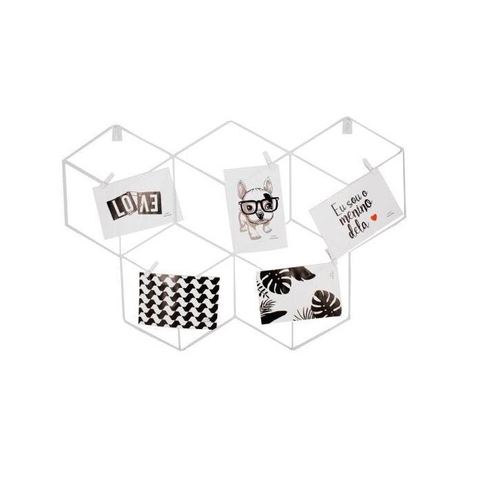 Mural para fotos / Grade de Recados / Memory Grid Última tendência em decoração, excelente para pendurar fotos, lembretes, frases e inspirações! Além de decorar, você irá guardar lembranças. Cor: Branco Composição: Metal Comprimento: 43 cm, Largura: 63 cm, Altura: 42 cm *Acompanha 05 mini prendedores Branco.* Fabricado por Interponte
