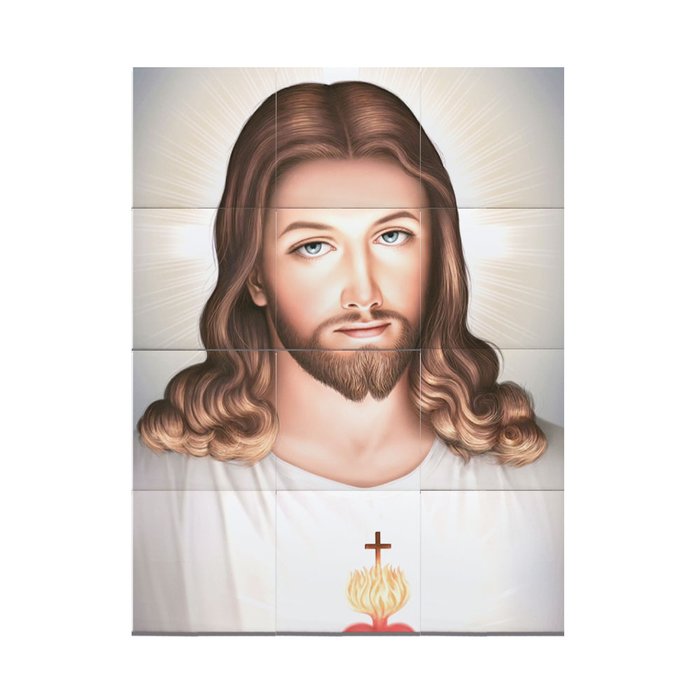Mural Sagrado Coração Jesus Mosaico Azulejos 12 Peças 80x60m