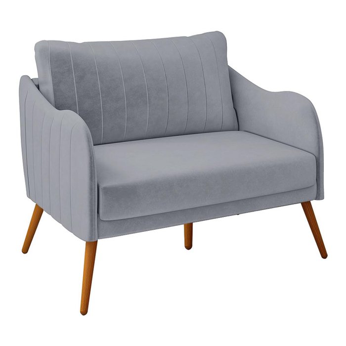Namoradeira 02 Lugares Salem Veludo Cinza Pés Palito Castanho - D'Rossi