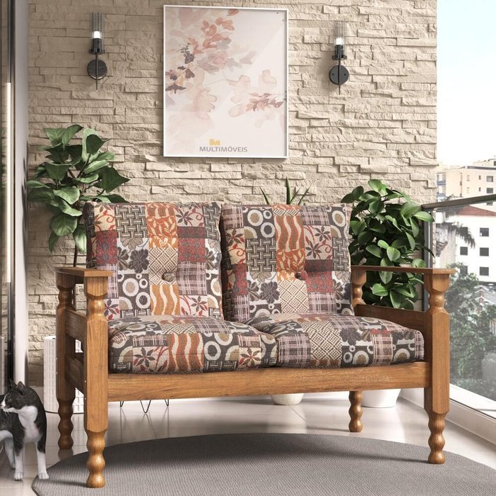 Namoradeira 2 Lugares Madeira Maciça Liz Multimóveis Cr7002.t66 Imbuia/floral