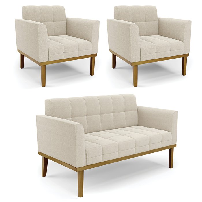 | Itens Inclusos | 1 Sofá, 2 Poltronas e 3 Bases |