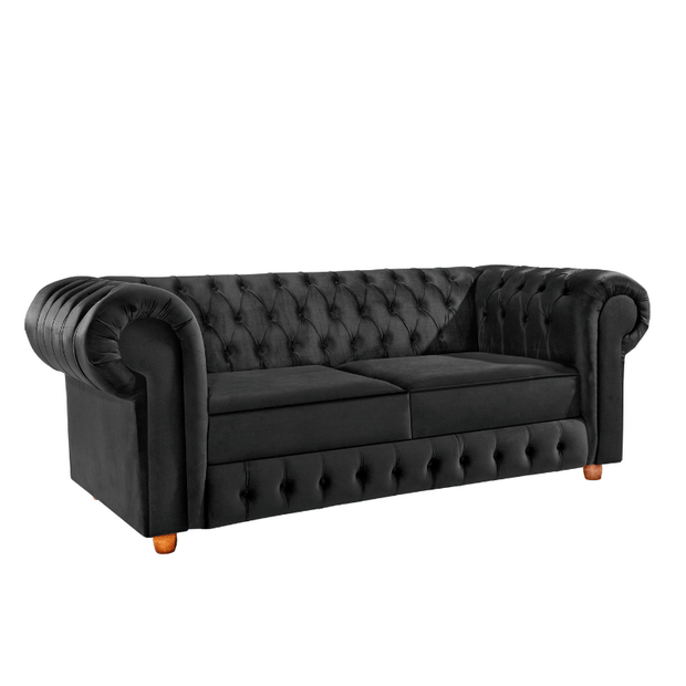 Namoradeira Chesterfield Bourbon 3 Lugares Via Encanto Veludo Preto Preto