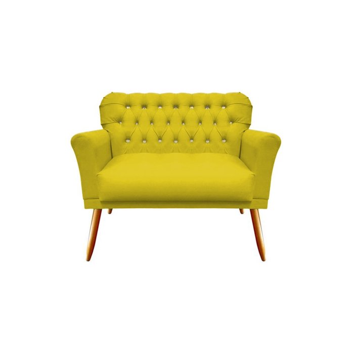 Namoradeira Decorativa Isabela Couro Amarelo 2 Lugares Pés Madeira Mz Decor Amarelo