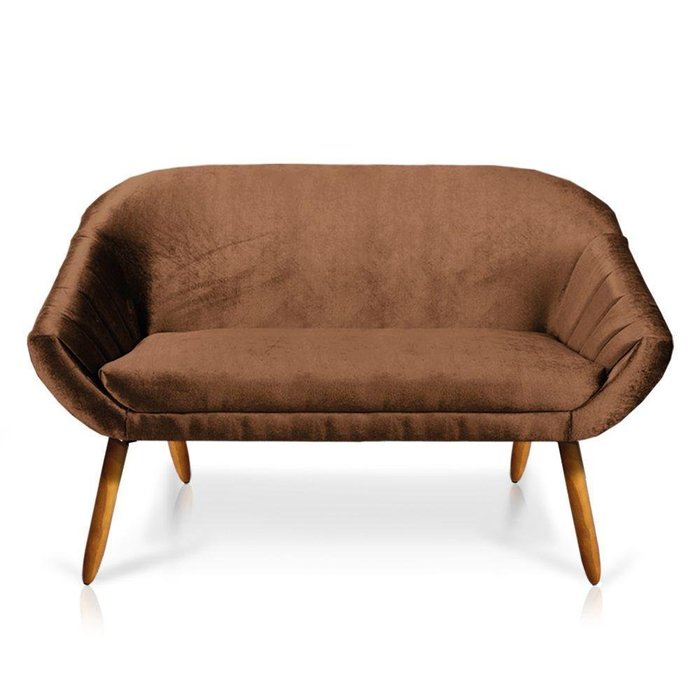 Namoradeira Giovana 02 Lugares Acetinado Marrom Pés Palito Castanho - D'rossi