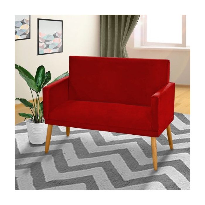 Poltrona Namoradeira Nina 2 Lugares Suede Vermelho Marsala