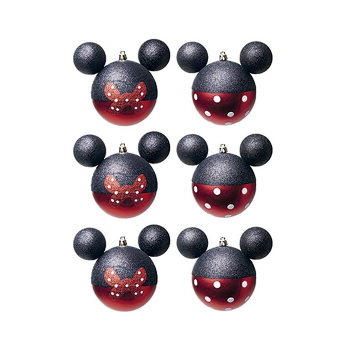 Natal Disney - Bola Minnie Poá Preto e Vermelho 6cm - 6 Un