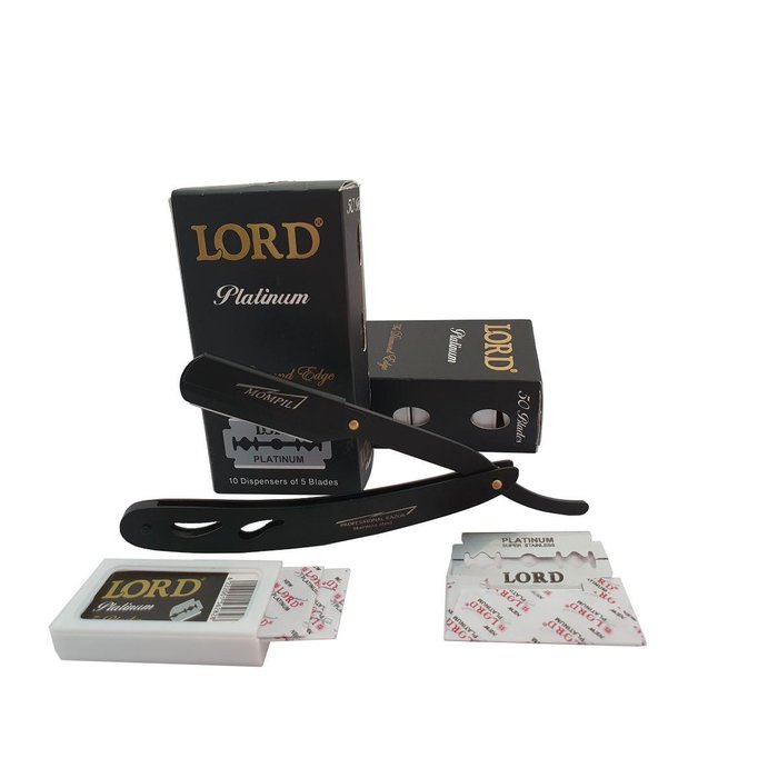2) 50 (cinquenta) lâminas de barbear descartável da marca lord black platinum edge, conforme foto do anuncio.