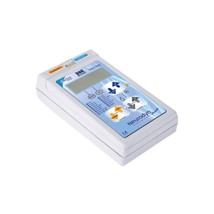 O Neurodyn Portátil da Ibramed - Aparelho de TENS e FES Burst 2 Canais é amplamente utilizado na fisioterapia ortopédica, traumatológica, reumatológica e neurológica. É um estimulador neuromuscular transcutâneo de dois canais com controles independentes para os tratamentos com Estimulação Elétrica Transcutânea (TENS) e Estimulação Elétrica Funcional (FES) .
