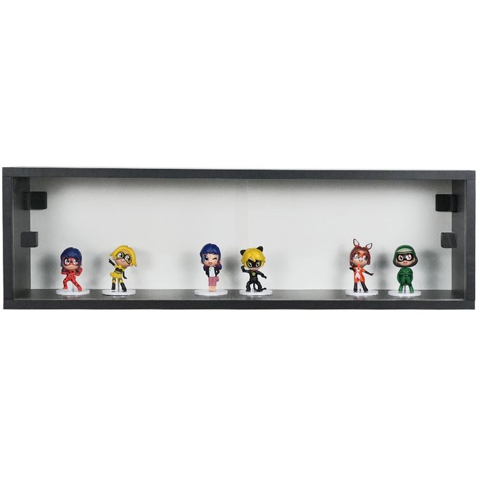 Possui duas portas de correr em acrílico com puxadores preto, que protegem contra poeira sem comprometer a visibilidade, tornando-o perfeito para exibir bonecos Funko, colecionáveis diversos ou itens de decoração.