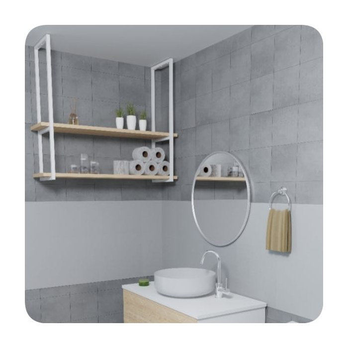 Ter um banheiro organizada traz leveza e praticidade para sua rotina, para ela fique em ordem, é necessário o uso de alguns produtos. O nicho granada de teto é indispensável, além de dar um toque especial na decoração.Produzido em aço com camada anti-ferrugem de fosfatização e pintura eletrostática epóxi, com prateleiras de MDF de primeira qualidade.CARACTERÍSTICAS TÉCNICAMaterial: Aço e MDF.Dimensões do tubo da estrutura: Tubo quadrado 20x20 mm.Acabamento da Estrutura de aço: Pintura Eletrostática EpóxiCor dos Arcos: BrancoAcabamento do MDF: Amadeirado