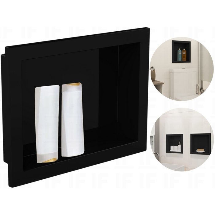 Nicho de Banheiro Plástico para Embutir 30x40 Preto Preto