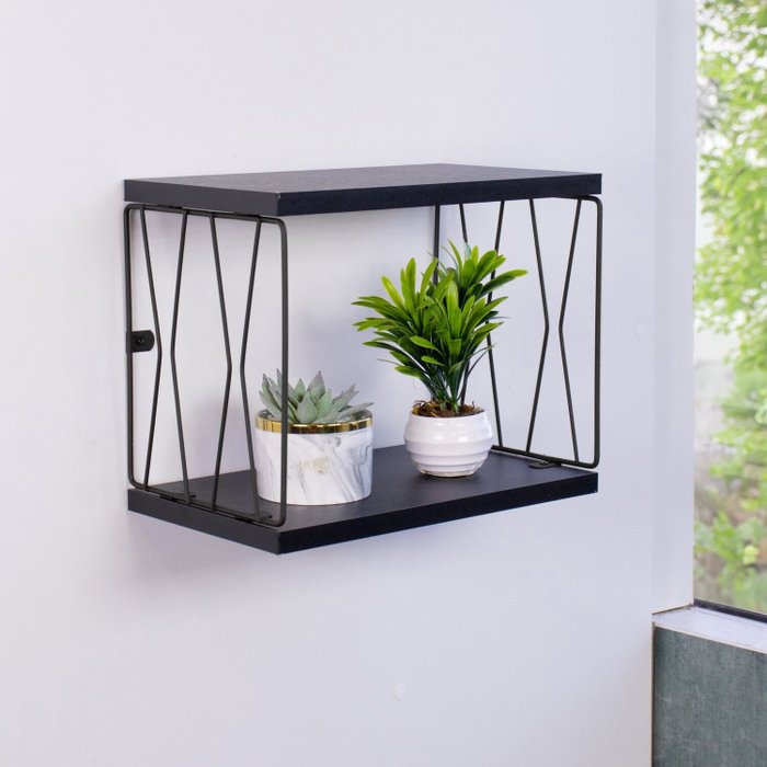 Nicho de Parede Aço e Madeira Pequeno Preto/Preto