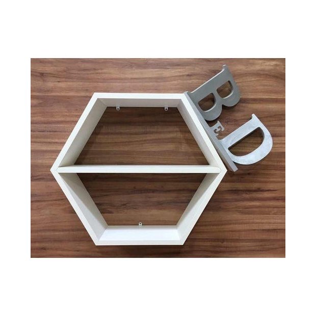 Nichos Hexagonal com Prateleira Contém: 1 Unidade Material: Mdf 15mmMedidas de cada extremidade: 50cm de comprimento, 45cm de altura e 15cm de profundidade Cor: Brancotx Acompanha parafusos e buchas para instalação- Todos com acabamento chanfrado e bem embalado!- Aceitamos encomendas Produzido em marcenaria B&D Arte e Decoração