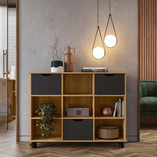 Nicho Organizador C/ Rodízios Freijó e 03 Gavetas Pretas Qmovi Freijó/Preto