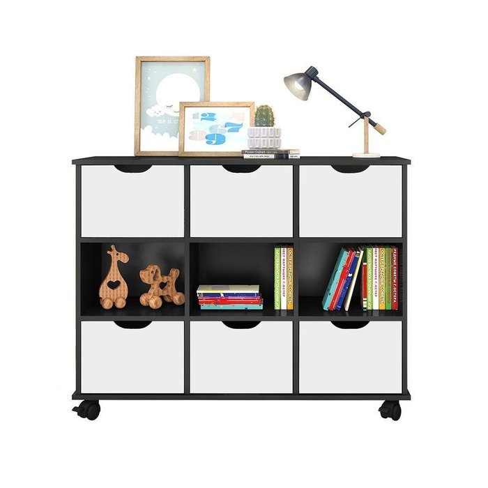 Nicho Organizador Multifuncional Com 6 Gavetas E Rodízios Qmovi Cor Preto / Branco - Qmovi