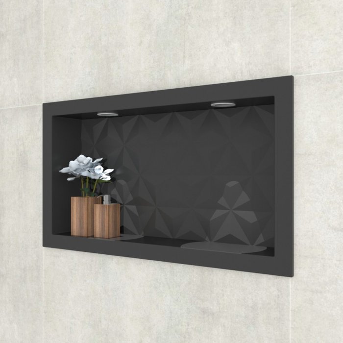 Nicho para Banheiro em Mármore Sintético Texturizado 60x30cm Preto