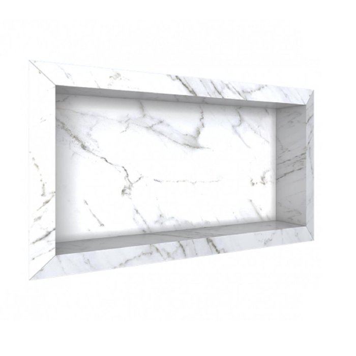É uma excelente escolha para valorizar o ambiente. Produzido em porcelanato, traz um aspecto sofisticado que, em conjunto com a borda diamante, se encaixa mais rente à parede devido ao ângulo das bordas. Cada vez mais presente em reformas ou construção, seu uso é uma forma inteligente de ganhar espaço, organizar produtos e decorar. O porcelanato é um material muito resistente e por isso o nicho pode ser utilizado em diversos ambientes, inclusive em banheiros.