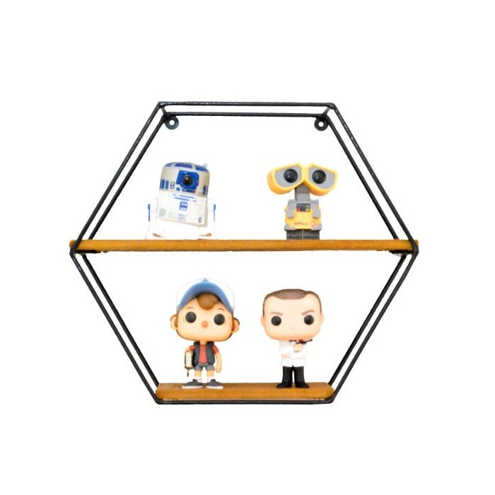 NICHO PRATELEIRA HEXAGONAL METAL ARAMADO E MADEIRA