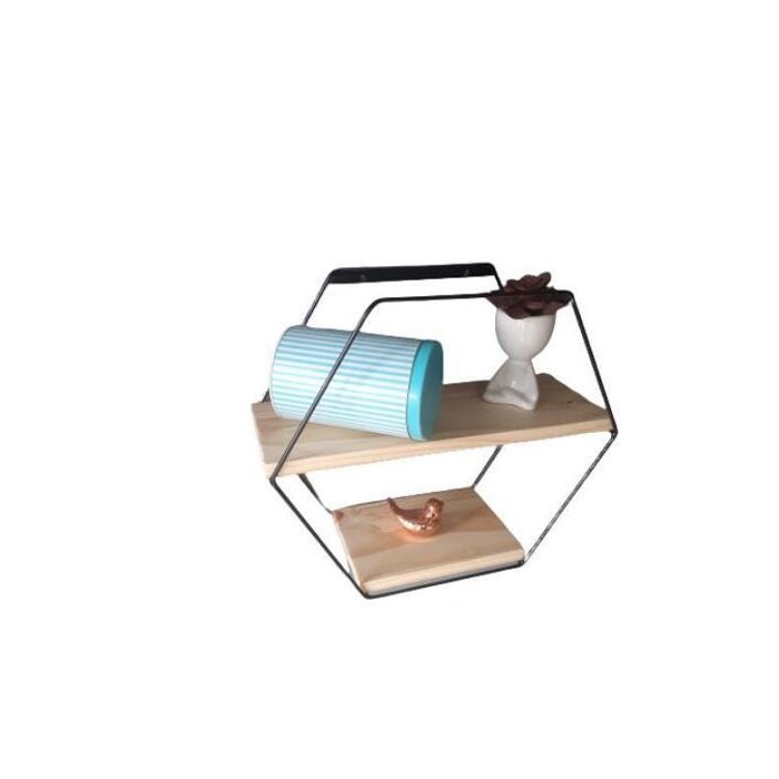 Nicho Sextavado Em Madeira Pinus/Metal Preto 35X15X40Cm