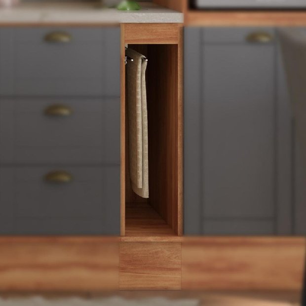 Para os módulos da cozinha nogal, combinamos MDP e MDF. O MDP, mais robusto, é utilizado na estrutura, oferecendo resistência e estabilidade, enquanto o MDF é aplicado nas portas, garantindo um acabamento de alta qualidade. Essa combinação resulta em um visual moderno e sofisticado, perfeito para compor ambientes contemporâneos.